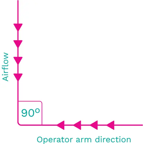 As well as slow and deliberate movements, requesting operators to move their arms in and out perpendicular to the air inlet direction will help to reduce the risk 13. This is practice illustrated below: