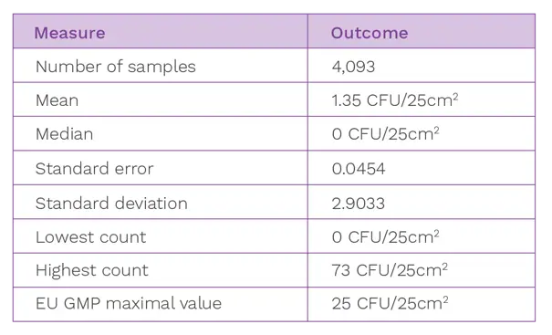 Figure 1: Data set from surface monitoring in a cleanroom