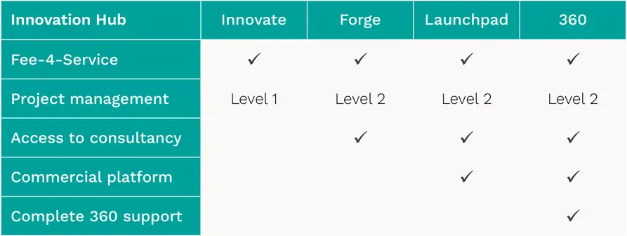 Our goal is to drive vital research and support innovation across the entire Life Science sector, that is why our Innovation Hub is not just a service, it provides a long-term partner to success. Whether you're a budding entrepreneur or an established innovator, our tailored packages offering a variety of cost packages designed to meet your unique needs and propel your vision forward.