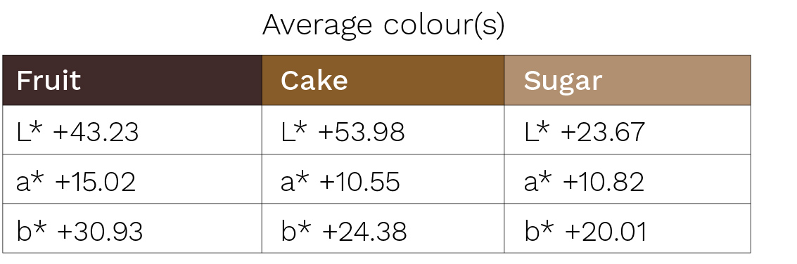 RSSL was asked to analyse an iced chocolate cake and country-style fruit cake with two main objectives in mind; to quantify the different topping components as a percentage of the overall surface area and determine whether this consistently met the desired product profile.