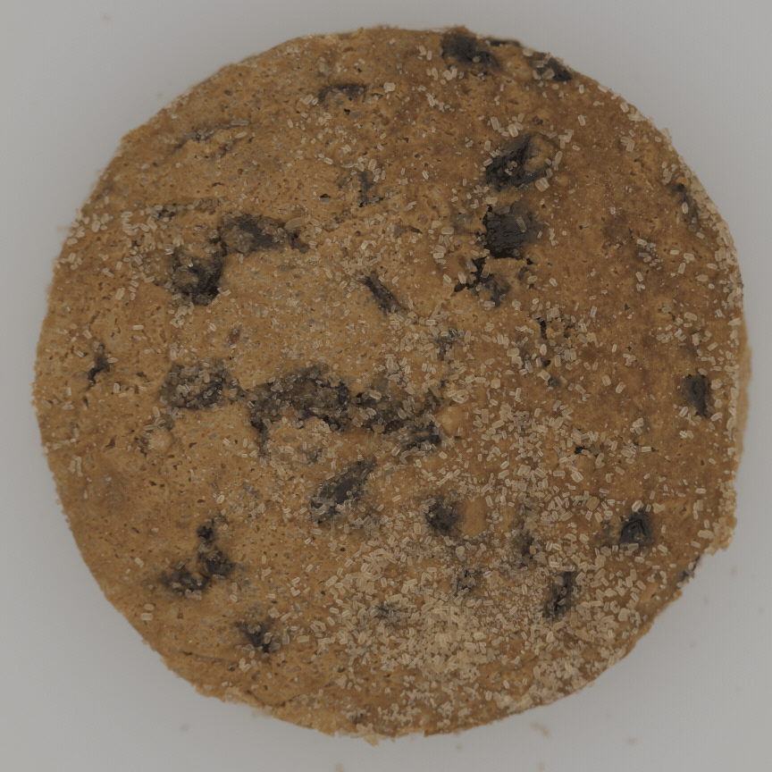 Country-style fruit cake: Three components - baked-in sultanas, sprinkled demerara sugar topping, sponge. Our analysis found that the sultanas and sugar accounted for around 25% of the visible surface – at 17% and 7% respectively – while the sponge represented 75%.