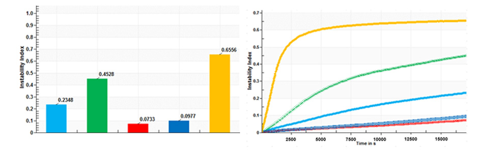 Working with this centrifugal method also enabled us to run the entire test under the influence of multiple gravities and accelerate any physical instability processes – significantly reducing development time. We evaluated a 12-month shelf life in just four hours.