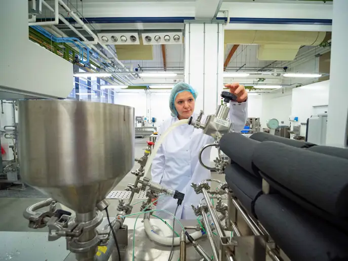 After successfully repeating a series of 75 kg factory trials, we scaled up to 150 kg, the required batch size for manufacturing the product for launch.