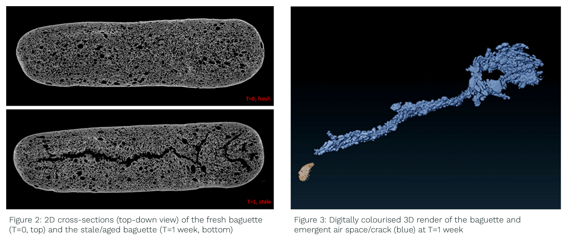 Micro-CT allowed visualisation of 2D cross-sections within the baguette, as well as the creation of a 3D render.