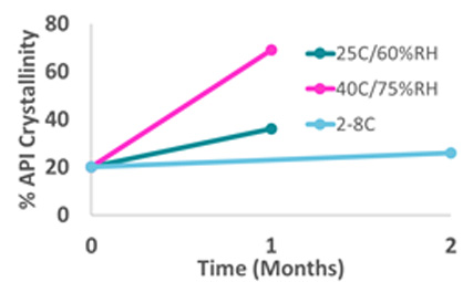 This method demonstrated the instability of the formulation with reference to physical form and storage temperature.
