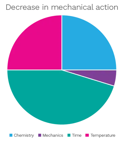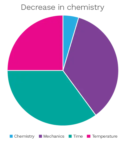 In the context of the cleanroom, ‘mechanics’ can be substituted for ‘wiping’ and ‘chemistry’ would represent the optimal concentration of a cleaning or disinfection agent or the type of chemical used. The exact optimal proportions will vary according to the specific process or cleanroom application.