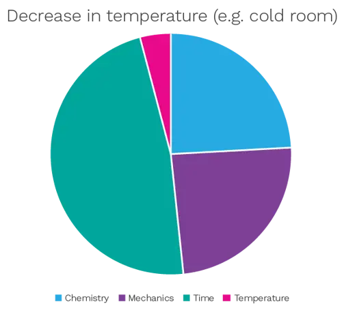 This is a variable that does not translate to cleanroom cleaning or disinfection as these tend to be undertaken at ambient conditions. However, should these activities be undertaken in a cold room, then contact times need to be increased to compensate for the lower temperatures. This is illustrated in Figure 5.