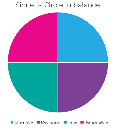 Hence, the classic Sinner approach informs us that chemistry / chemicals, mechanical power / wiping, time (especially contact time) and temperature (especially decreases in temperature) each represent the four essential factors that determine the success of both cleaning and disinfection.