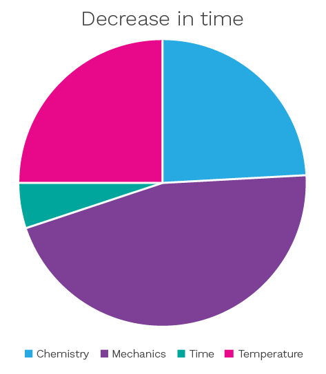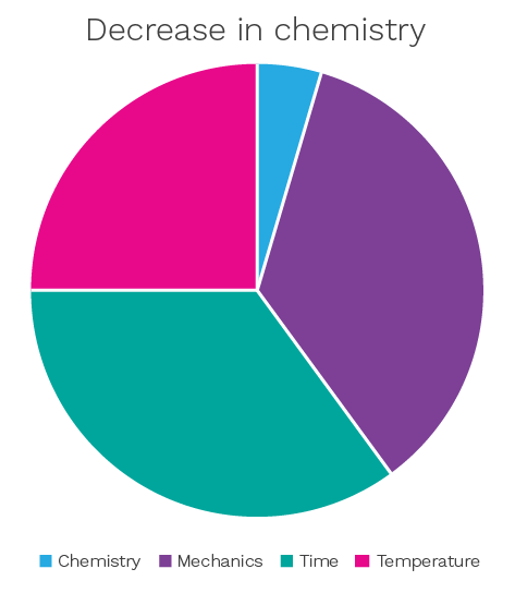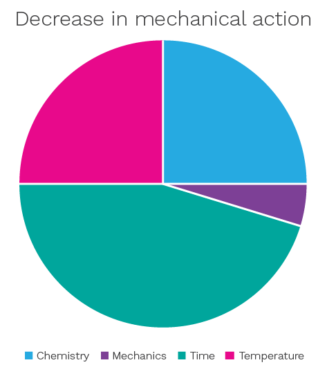 In the context of the cleanroom, ‘mechanics’ can be substituted for ‘wiping’ and ‘chemistry’ would represent the optimal concentration of a cleaning or disinfection agent or the type of chemical used. The exact optimal proportions will vary according to the specific process or cleanroom application.