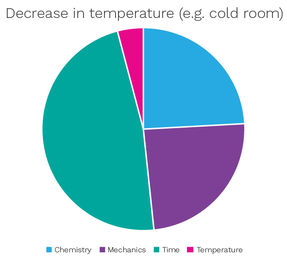 This is a variable that does not translate to cleanroom cleaning or disinfection as these tend to be undertaken at ambient conditions. However, should these activities be undertaken in a cold room, then contact times need to be increased to compensate for the lower temperatures. This is illustrated in Figure 5.