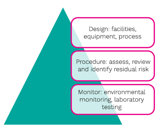 Areas need to be appropriately designed and of sufficient space. Any activities should be supported with equipment of appropriate design, including the implementation of single use, sterile disposable technologies. Procedures need to be well-written as they play an important part of risk mitigation, especially in relation to critical steps such as running the process, line assembly, interventions and cleaning and disinfection. Monitoring needs to be based on a sound, scientifically based strategy. In the context of Annex 1, it is useful to break each clause down in order to assess each point. Figure 4 is an example using Section 8 of the Annex: