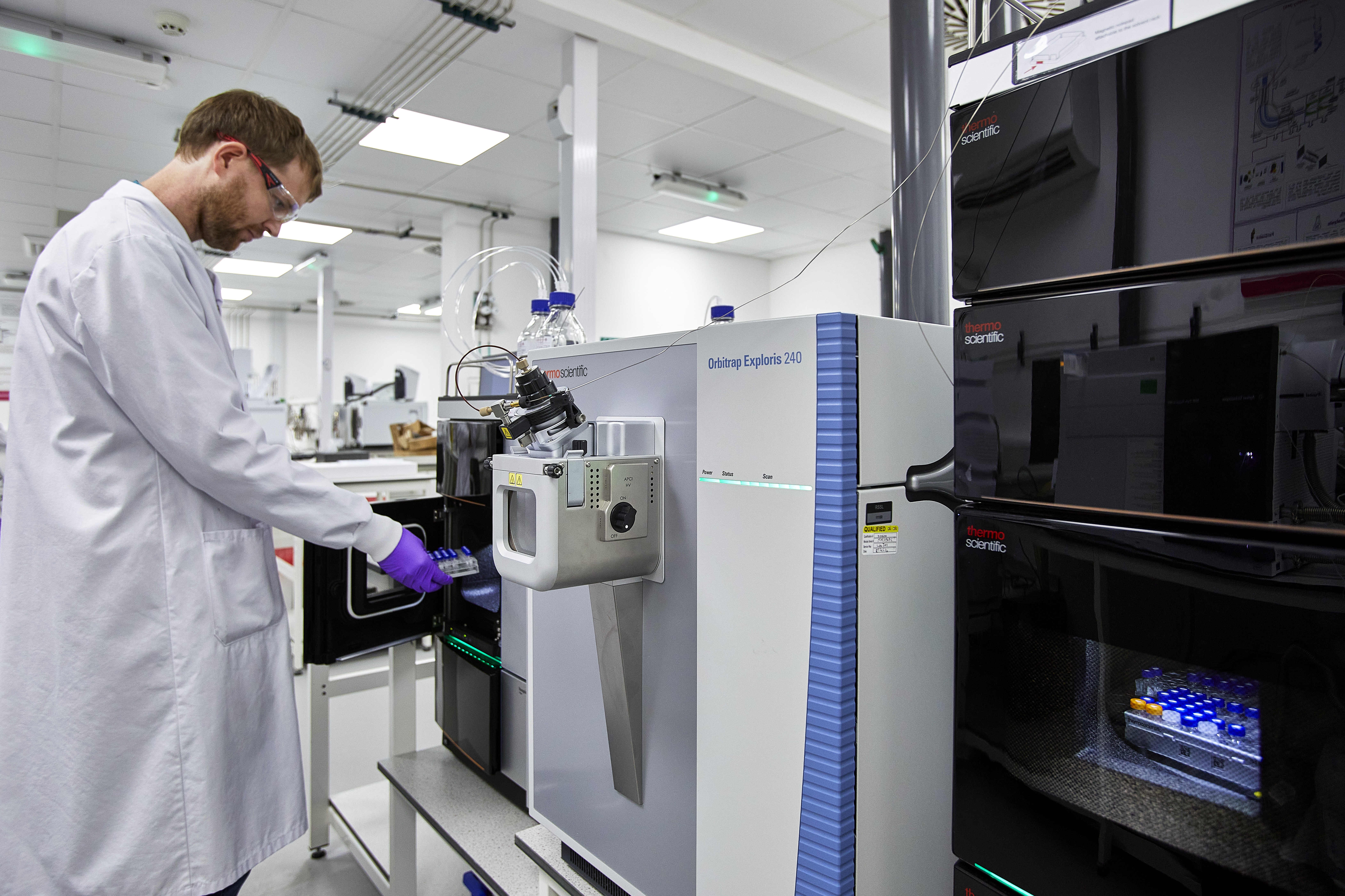 Protein sequence confirmation and identification of post-translational modification (PTM) analysis is performed at RSSL by proteolytic digestion followed by liquid chromatography-tandem mass spectrometry (QToF or Orbitrap).