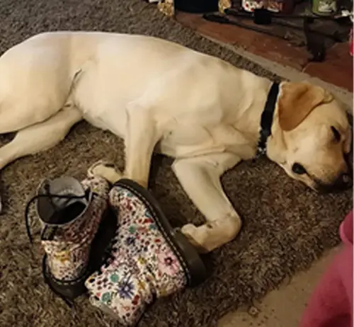 Monty has been going on plenty of adventures with Rebecca, as she frequently heads into the city centre and attends university open days. Monty keeps Rebecca company during university lectures where he tends to lay down and relax, occasionally nudging her to check that all is well, before settling down again.