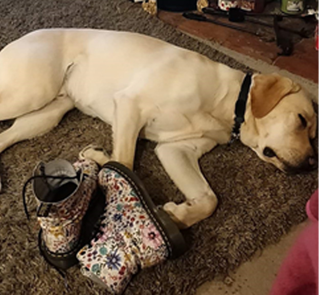 Monty has been working hard with his trainer Jen but has recently developed “soft” paws. Dogs for Good are not sure why this has happened and are keeping a close eye on him to monitor his progress. Because of this, Monty has been on a reduced exercise programme over the last few weeks and has fallen a little behind with his training. However, Jen is confident that this won’t hinder his long-term development too much. Monty is a bright boy and a mastermind at all the task based activities that he is given!